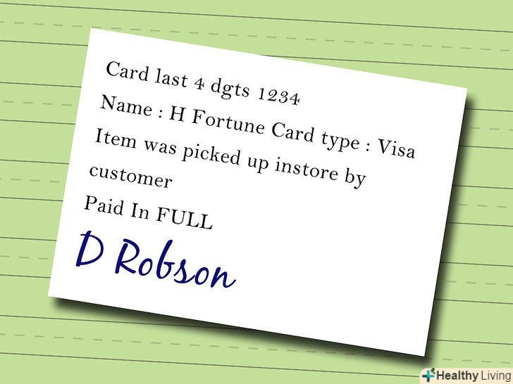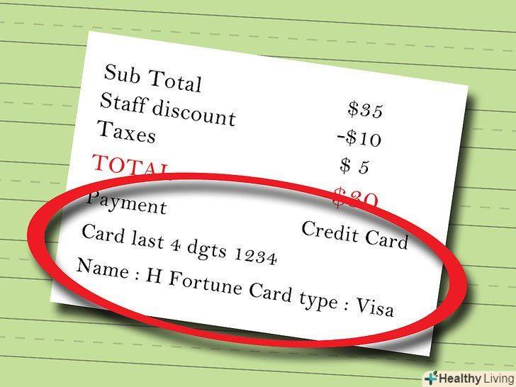 Якщо покупець скористався дебетовою або кредитною карткою, можна включити в чек ім'я, вказане на картці, чотири останні цифри кредитної картки і тип картки.