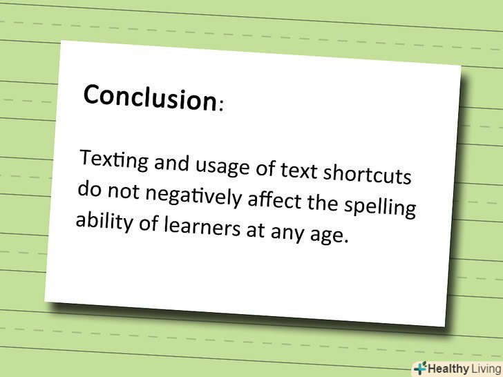 Використовуйте одну важливу допоміжну деталь: основна частина повинна бути обов'язково між введенням і кінцівкою. У кінцівці потрібно вибрати і перерахувати основні тези з головної частини (з кроку 1).[4]- Кількість тез залежить від обсягу вашого есе. Якщо ви збираєтеся написати близько п'яти абзаців, то три з них повинна займати головна частина, відповідно, в ній буде 3 основних ідеї.
