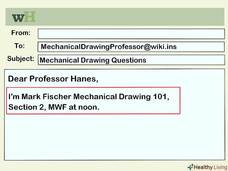 Нагадайте викладачеві про себе.у викладачів буває занадто багато студентів, щоб відразу про всі пам'ятати, тому вам не завадить нагадати про себе. Вкажіть свої ім'я та прізвище, а також групу, в якій навчаєтеся, і найменування предмета, наприклад: "Вас турбує Андрій Бєляєв з групи ПМ-1, де ви викладаєте економіку".[5]