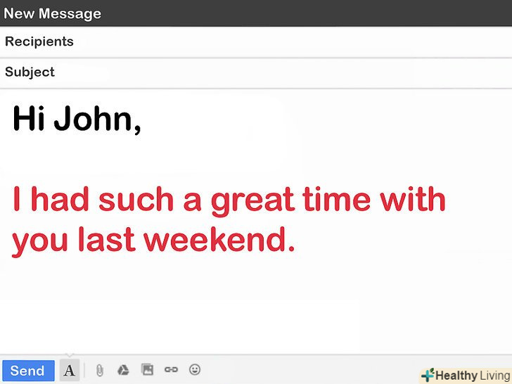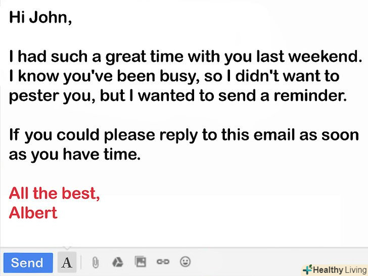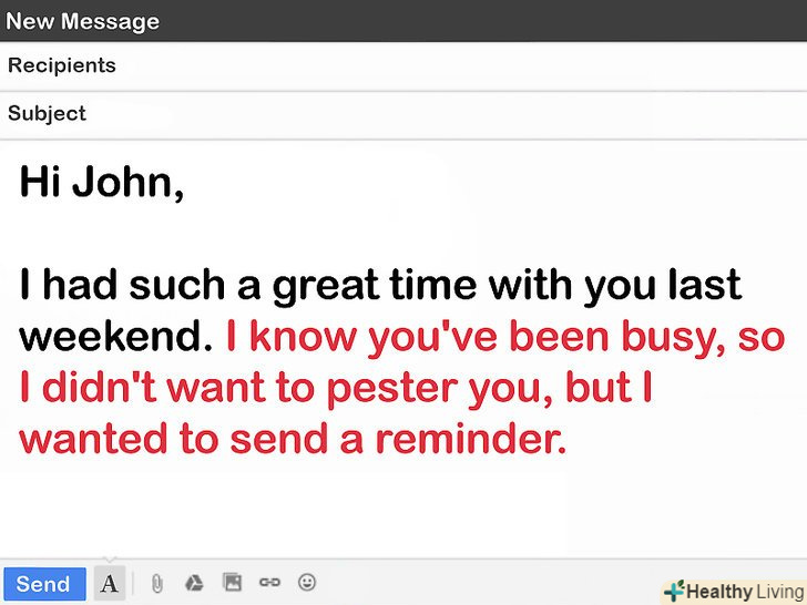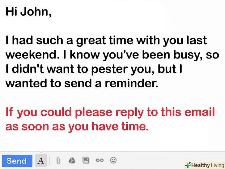 Згадайте особистий зв'язок з одержувачем.якщо відразу перейти до нагадування, то лист може здатися холодним. Вкажіть особистий зв'язок з адресатом за допомогою фраз, що описують ваші відносини або спільні спогади. Наприклад: [3]- Як твої справи в школі?