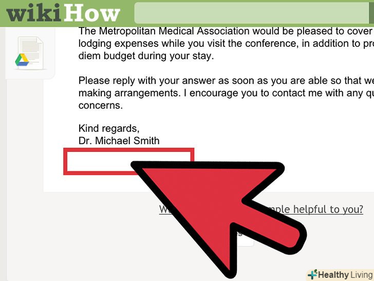 Завершіть ввічливим висновком.додайте ввічливий висновок на кшталт «з повагою«,» з найкращими побажаннями «або»дякую".- Заголовної залиште тільки першу букву першого слова.