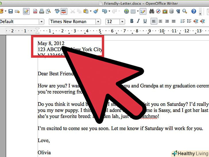 - Залиште порожній рядок між датою і наступною частиною листа.
