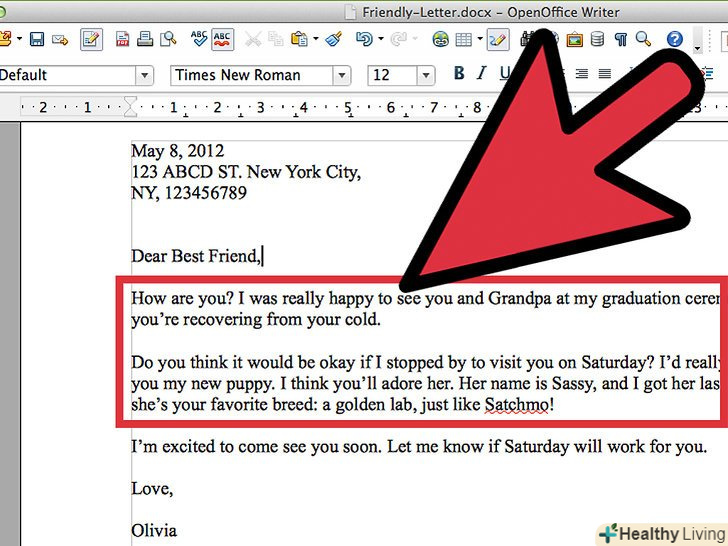 - Весь основний текст повинен бути надрукований з використанням одиночного інтервалу. Як правило, в дружньому листі немає необхідності пропускати рядки між абзацами, але ви можете зробити це для зручності читання вашого листа.