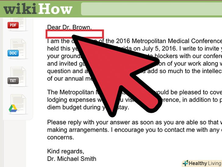 Увімкніть ввічливе привітання.типове привітання починається з " Шановний (а)", після чого слід ім'я одержувача і його по батькові (якщо це може бути застосовано до ситуації). За назвою слід кома.- Привітання слід вирівнювати по лівому краю.