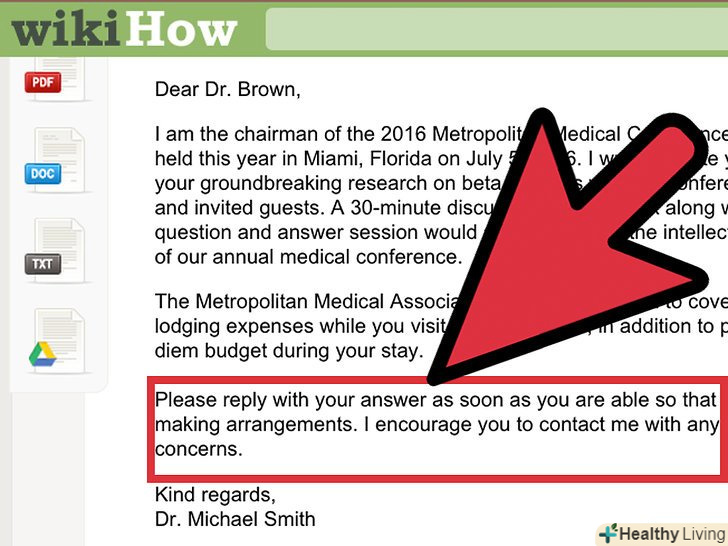 При необхідності Наведіть посилання на попередню переписку або розмову. [2] якщо в листі ви посилаєтеся на певну документацію або попередню переписку, ви можете вказати це в цьому пункті.- Посилання вирівняйте по лівому краю.