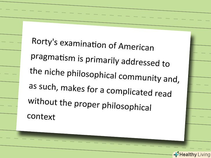 Визначте цільову аудиторію та рівень складності джерела, на який ви посилаєтеся.Дайте читачеві анотації зрозуміти, чи є джерело матеріалу головним чином академічним чи ні, а так само чи є він доступним для непрофесіонала.- Приклад: "Експертиза американського прагматизму Рорті більшою мірою адресована нішам філософського суспільства і, отже, є складною для читання без належного філософського контексту.