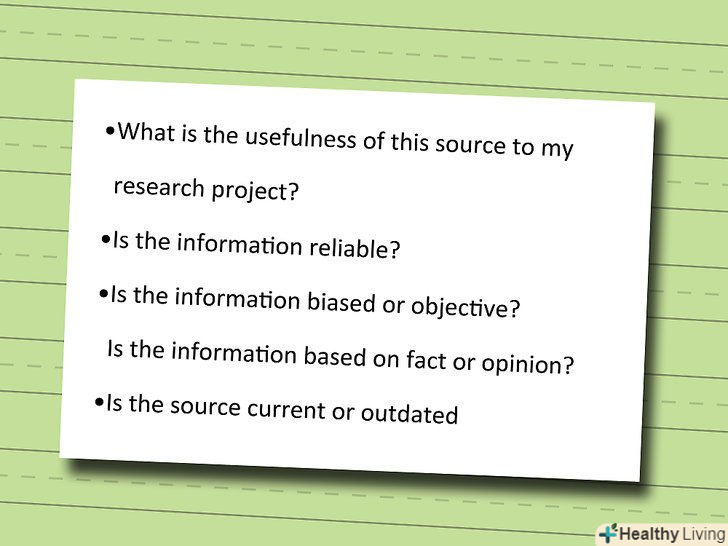Дайте оцінку кожному джерелу.після підведення підсумків, погляньте на нього ще раз, але з більш критичної точки зору. Потім розгляньте наступні питання:- Яка користь для мого проекту від цього джерела?