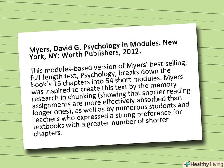 Посилаючись на книгу, журнал або інший документ, використовуйте відповідний (або призначений) стиль.якщо ви робите роботу для навчального курсу, уточніть у свого викладача, який стиль він віддає перевагу. Якщо ви не знаєте, який стиль повинні використовувати, то ви можете використовувати найпоширеніші види написання цитат: Асоціація сучасних мов (англ. Modern Language Association, MLA) надає керівництво для гуманітарних наук, А Американська асоціація психологів (англ. American Psychological Association, APA) - для соціальних наук.[1][2][3] є й інші популярні стилі для публікацій:- Чикаго (англ. Chicago) або Турабіанський стиль (англ. Turabian Style), для видавництва