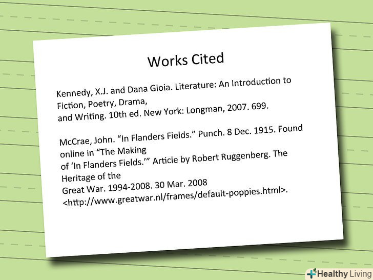 Переконайтеся, що цитування відформатовано відповідно до використовуваного стилю. Перерахуйте автора (- ів); використовуйте тільки повні назви книг і статей, на які ви посилаєтеся; пишіть повні імена видавців; вказуйте дату публікації або останньої версії матеріалу, якщо джерелом є веб-сторінка. Правильно цитоване джерело MLA буде виглядати приблизно так: