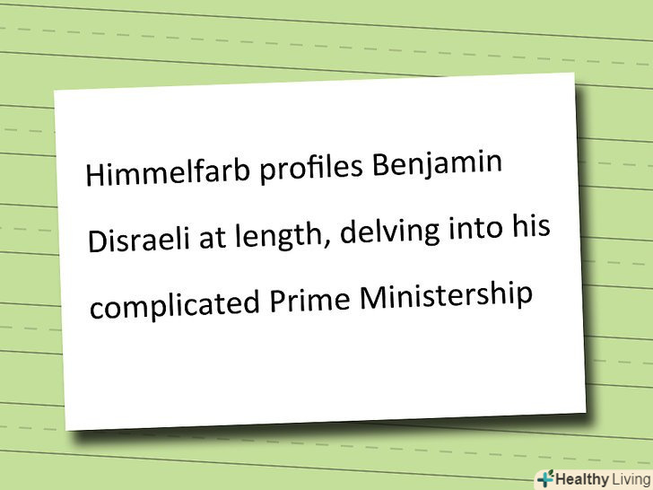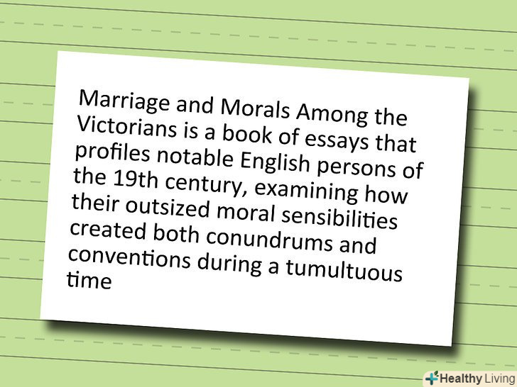 Перелічіть головні аргументи або основні теми.Дайте читачеві швидко зрозуміти, про що йде мова.- Приклад: "шлюб і мораль серед вікторіанців - це книга нарисів, що описує примітних англійців 19 століття, вивчаючи, як їх неглибокі моральні почуття змогли створити головоломки і умовності у важкий час."