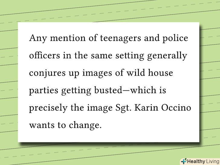 Напишіть вступ або"лід".у вузькому сенсі слова лід означає Вступ до новинної статті. Взагалі, це слово-частина журналістського жаргону. Для написання Ліда потрібно використовувати головну ідею і захоплююче перше речення (часто побудовано на історіях з життя), яке втягує читача в історію.- Напишіть зачіпку, як в актуальних новинах або щось навіть більш привабливе. У репортажах актуальних новин репортери часто пишуть лід, в якому коротко викладаються факти. Це стандартний підхід, в інших факти викладаються в самій статті, лід же містить філософські роздуми або міркування на загальнолюдські теми.