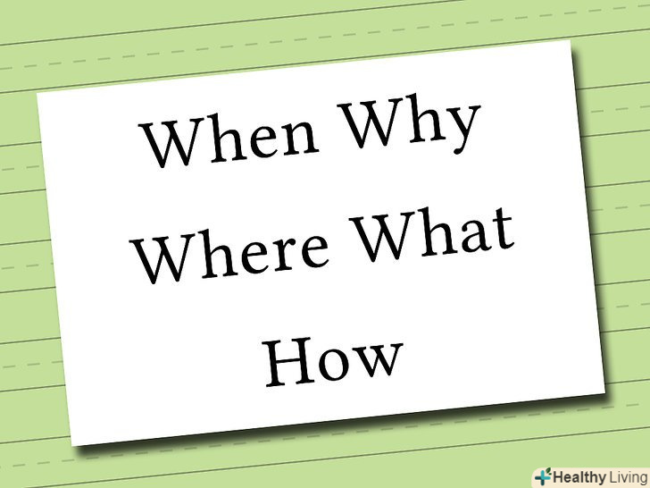 Вставте факти.після Ліда ви повинні коротко викласти факти, представити читачеві основних дійових осіб статті і розповісти, про що історія.- Використовуйте правило п'яти питань. Це важливе правило в журналістиці, яке часто називається правилом п'яти питань. Подумайте про те коли, чому, хто, що і як.