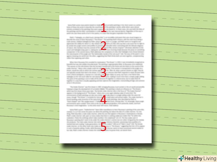 Знайте, скільки абзаців включити в есе.найчастіше есе складається з п'яти абзаців, але описове есе може бути набагато довшим.- Якщо ви плануєте есе з п'яти абзаців, основна частина повинна мати три абзаци, отже, три підтверджуючих докази, які розкривають вашу тезу.[3]