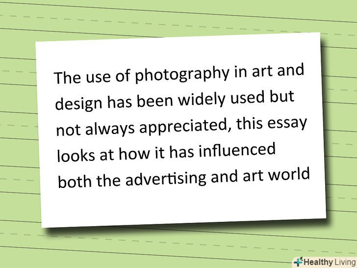 З'ясуйте, що все це означає.перед тим, як почати писати вашу роботу, ви повинні сформувати свої власні висновки. Незважаючи на те, що вам не потрібно наводити аргументи, вам все ж потрібно знати те, про що ви пишете.- Тема, яку ви виберете, в кінцевому підсумку повинна буде відображена в ваших тезах.