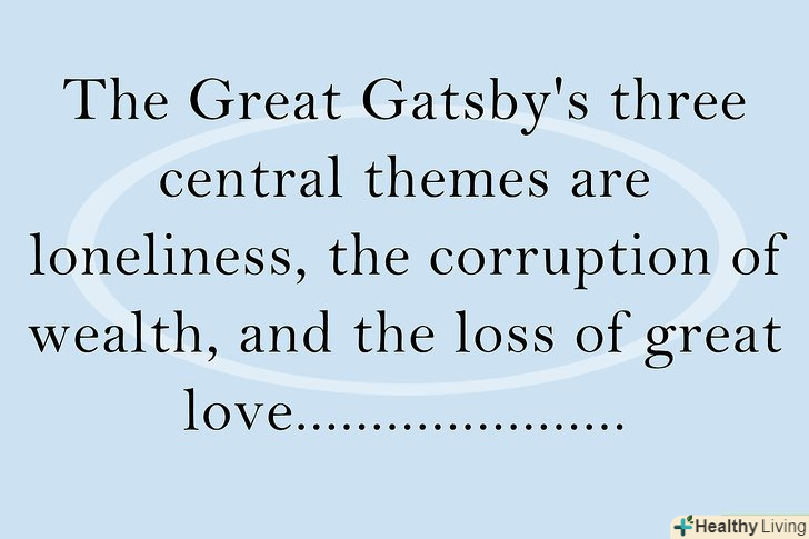 Напишіть тезу, чітко і ясно виражає думку, яку можна використовувати в якості оспорюваного аргументу. ви не зможете написати тезу про те, як живуть єдинороги, тому що не зможете підкріпити це фактами, точно так само як і про шкоду куріння не напишіть, просто тому, що з цим складно посперечатися. Замість цього постарайтеся підібрати цікаву аргументацію по своїй тематиці, до якої зможете привести і контраргументи. Ось приклади тез для різних видів творів:- Теза для твору-аналізу: «Три основні теми, якими пронизаний фільм» Великий Гетсбі»це самотність, влада багатства над людиною і втрата справжнього кохання".