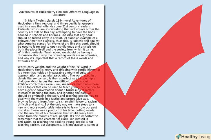 Перевірте свою роботу. після того, як ви закінчили чорновий варіант роботи, вам потрібно до нього повернутися і перечитати, перевіряючи, чи немає в ньому логічних нестиковок, непідкріплених або слабких аргументів. Ви так само можете виявити нестиковки або повтори в тексті, або відчути необхідність трохи підправити тези – це цілком природно.- Після того, як твір буде готово, ви можете перевірити його на наявність граматичних і пунктуаційних помилок.