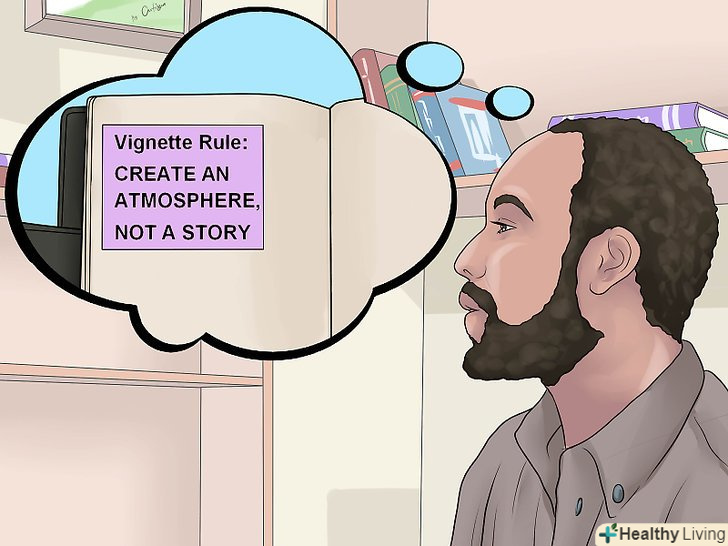 При написанні намагайтеся не обмежуватися одним стилем.тут немає ніяких особливих правил щодо дотримання певного формату. Ви можете писати так, як вам захочеться. Якщо захочете, у вашому оповіданні буде вступ, основна частина і завершення. Якщо захочете пропустити вступ - це на ваш розсуд.[2]- У цьому жанрі не обов'язково ставити проблему або вирішувати її. Часто замальовка не має чіткого кінця; це просто фрагмент, на відміну від роману або розповіді з чіткою сюжетною лінією.