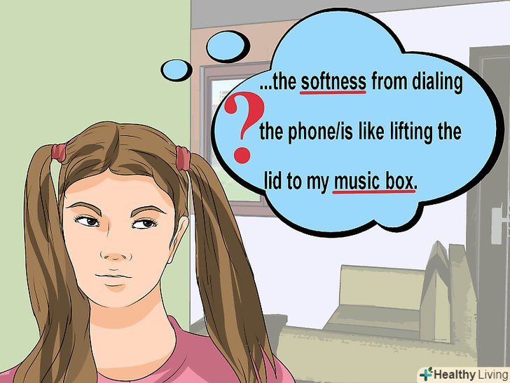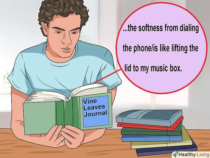 Додайте більше деталей, які передали б читачеві емоції.зосередьтеся на п'яти почуттях: відчуттях, смаках, звуках, запахах, зорових образах. Твір буде більш "живим", якщо ви додасте більше деталей про свої почуття, будь то аромат квітки або м'якість пелюсток, до яких ви доторкнулися.[15]- Щоб прикрасити свою розповідь, можна додати мовні засоби виразності: порівняння, метафору, алітерацію. Однак використовуйте їх в міру і не заради самих себе, а заради виразності розповіді в цілому.