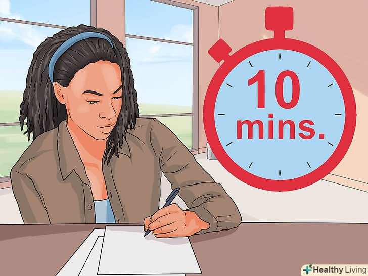 Записуйте потік своїх думок. не думайте про структуру або правильність написання, просто пишіть все, що спадає на думку.- Візьміть аркуш паперу або створіть новий текстовий документ на комп'ютері. Нагорі напишіть головну тему. Потім поставте таймер на 10 хвилин і почніть писати все, що спадає на думку.[12]