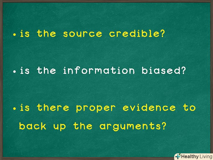 Вивчіть надійність джерел з критичної точки зору.той факт, що інформація отримана з начебто достовірного джерела (наукового журналу або книги, або новинної статті), ще не означає, що вона вірна. Займаючись власним вивченням інформації, задумайтеся над рядом питань, які вказані нижче.- Звідки автор отримав інформацію? Чи можна вважати ці джерела надійними?