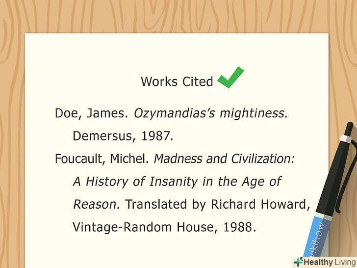 Складіть список бібліографічних джерел .у бібліографічному списку повинні бути вказані всі джерела, згадані за текстом вашої роботи. Тим не менш, список не повинен бути занадто громіздким. Вимоги до оформлення самого списку можуть варіюватися. Список джерел зазвичай оформляється в алфавітному порядку в кінці наукової статті. [19] як мінімум, для кожного джерела слід вказати:- Автора;