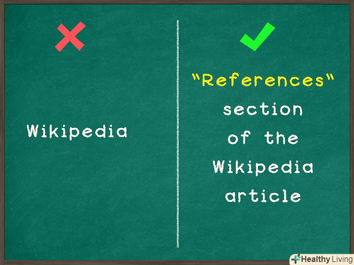 Виберіть належні джерела інформації. шукайте шановні, перевірені та сучасні джерела. Найкраще, якщо всі вони будуть опубліковані в останні 5-10 років. Наукові книги і перевірені статті з наукових журналів зазвичай вважаються надійними джерелами, також до них можна віднести і новинні статті із засобів масової інформації з перевіреною репутацією. Уникайте неофіційних публікацій та публікацій на сайтах з можливістю користувацького редагування, таких як Wikipedia.[6]- Незважаючи на те що Wikipedia часто ненадійна і не є належним джерелом інформації для більшості навчальних робіт, її можна використовувати як непогану відправну точку свого дослідження. Просто перевірте розділ літературних джерел до відкритої вами сторінці на предмет корисних посилань.
