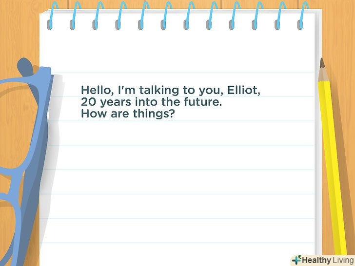 Використовуйте розмовний стиль.ви пишете лист самому собі, тому офіційний стиль ні до чого. Уявіть, що Ви розмовляєте з кращим другом.[2]- Нинішнього себе можна називати "я", а себе в майбутньому — "ти".