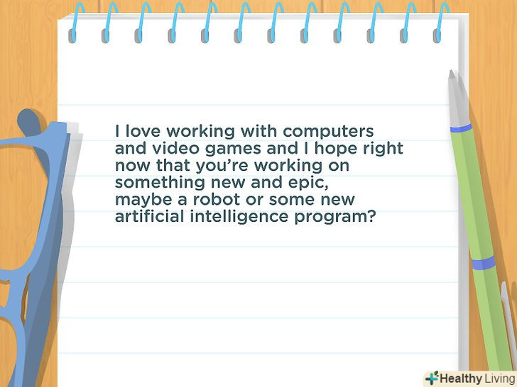 Підведіть короткі підсумки нинішнього життя. На початку листа опишіть себе зараз. Вкажіть свої останні досягнення на зразок середнього бала в школі і нинішні інтереси, в тому числі хобі та захоплення. У майбутньому буде простіше зрозуміти, наскільки ви змінилися за всі ці роки.[3]
