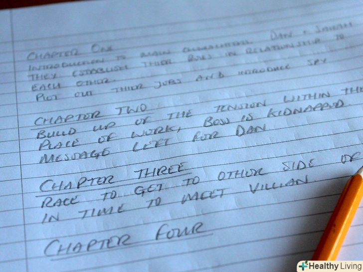 Упорядкуйте всі деталі оповідання.попрацювавши над основною ідеєю, ви повинні помітити, що у вас просто повним повно всього, про що можна і потрібно написати. Тепер настала пора все впорядкувати і організувати таким чином, щоб розповідь виглядало логічним і чітким. Подумайте про те, що захочуть дізнатися читачі на самому початку, і розмістіть основи на початку книги. Після цього вже можна переходити до більш складних моментів книги, не боячись втратити читача.- Пам'ятайте, що кожен рядок вашого плану-це майбутня глава. А глави цілком можна ділити на тематичні групи, так само як і глави можна об'єднувати за принципом суміжності теми.