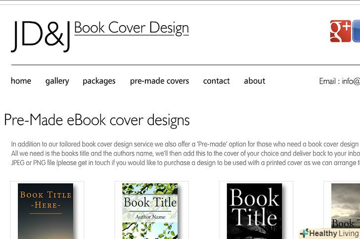 Додайте обкладинку.як і звичайним книгам, цифровим книгам потрібна обкладинка, нехай навіть і віртуальна. Проте, в першу чергу покупець побачить саме обкладинку, так що є сенс задуматися про те, щоб найняти професіонала. Головне, не використовуйте захищені авторським правом зображення, не маючи на те дозволу.- Брати навіть фрагмент зображення, захищеного авторським правом, не маючи на те дозволу, не можна.