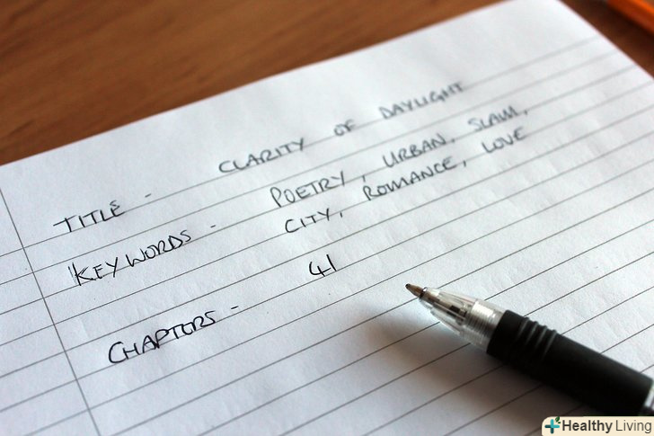 Зберіть всю супутню інформацію.чим відповідальніше ви підійдете до цього завдання, тим простіше буде впоратися з публікацією. В окремий файл зберіть назву книги, її зміст, кількість глав, кількість слів і сторінок. Потім підготуйте список ключових слів і, якщо треба, тези.- І далеко не факт, що тези будуть потрібні, якщо тільки мова не йде про науково-популярні твори.
