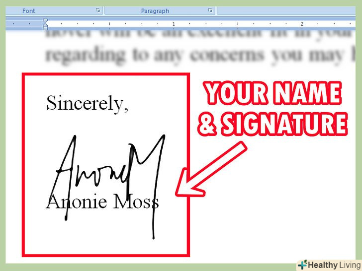 Попрощайтеся і підпишіть лист.використовуйте ділові формулювання на кшталт» з найкращими побажаннями «або»з повагою". Залиште два порожніх рядки для підпису від руки і надрукуйте в кінці листа своє ім'я та прізвище.