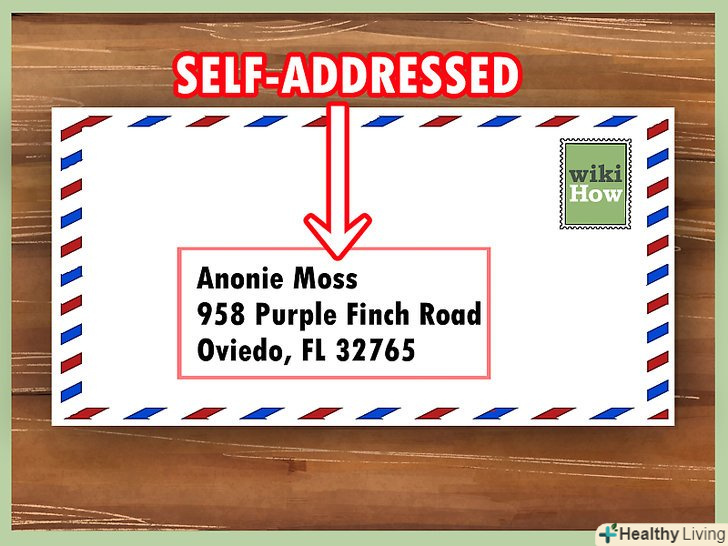 Прикладіть конверт з власною адресою і маркою.до звичайного листа завжди рекомендується додавати конверт зі зворотною адресою відправника і маркою, щоб видавець або агент відповів на вашу заявку.[12]- Така передбачливість полегшить життя видавцеві і агенту, так як їм не доведеться витрачати час на пошук ваших контактних даних для відповіді.