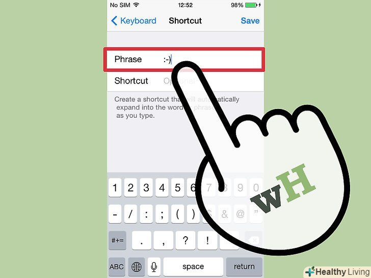 Скопіюйте або введіть смайлик в поле "Фраза".