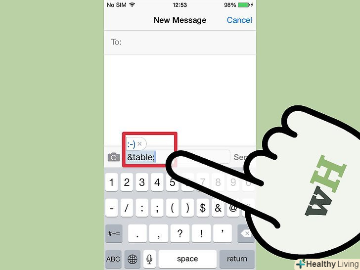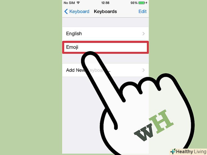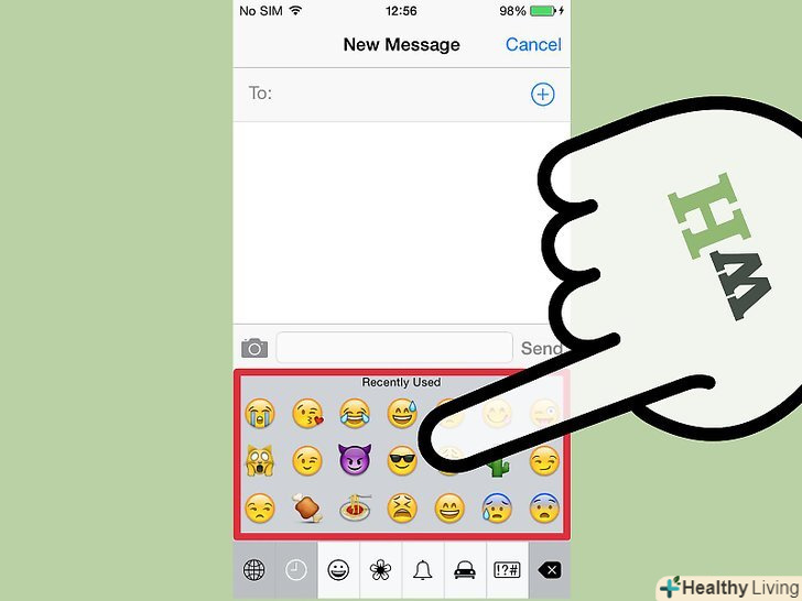 Для додавання картинки емодзі в текст, виберіть певний символ (а не набір символів, як в смайликах).процес вибору символу залежить від операційної системи.- IOS: після включення клавіатури емодзі натисніть значок у вигляді усміхненого смайлика, щоб відкрити клавіатуру емодзі. Якщо у вас в системі встановлено кілька мов, то значок матиме вигляд глобуса, а не усміхненого смайлика. Прокрутіть список символів емодзі і клацніть по тому, який ви хочете вставити.