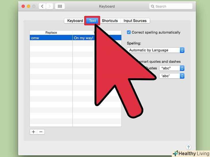 Виберіть "Клавіатура «і перейдіть на вкладку»Текст".