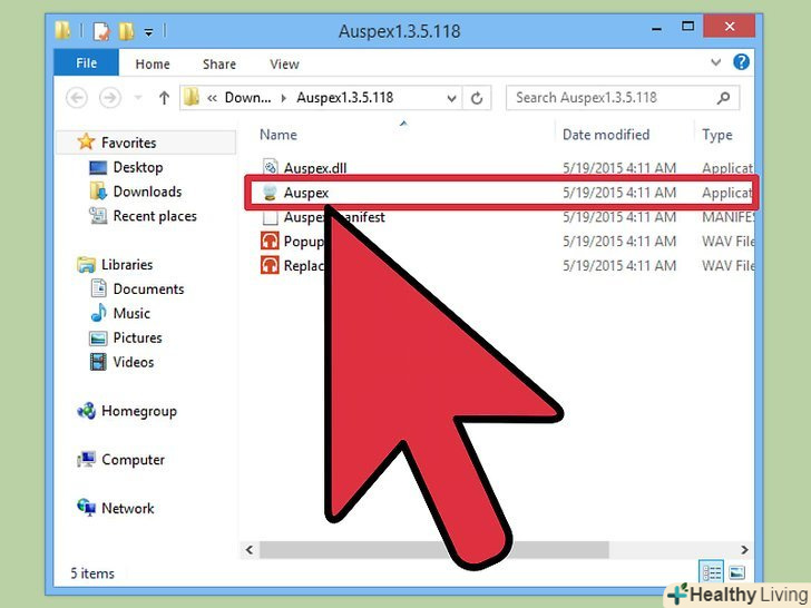 Скачайте "Auspex". це безкоштовна утиліта, призначена для прискорення набору тексту, і може бути використана для створення клавіатурних команд, які змінюються на смайлики.- Ви можете завантажити цю утилітуздесь. Вам потрібно буде розпакувати архів, клацнувши по ньому правою кнопкою миші і вибравши "витягти в поточну папку".
