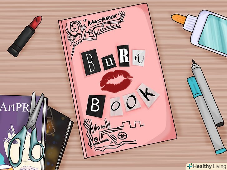 Прикрасьте його. Зробіть його красивим і привабливим. Для повної схожості з фільмом виріжте з журналів і газет потрібні букви і приклейте їх на обкладинку. Розташуйте сліди від поцілунків по всій сторінці обкладинки - можете використовувати наклейки у формі слідів від поцілунку, або ж просто нафарбувати губи червоною помадою і розцілувати вашу книгу. На завершення, додайте різних колючих слівець на кшталт "зрадник", і цитат в стилі"виживе лише найсильніший".
