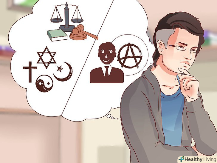 Розгляньте своє ставлення до ієрархічної влади.багато анархістів мають проблеми з державою, ієрархічною релігією і великими регламентованими організаціями. Подумайте про ставлення до кожного з цих об'єктів.- Чи вважаєте ви, що держава занадто потужна? Чи вважаєте ви, що держава занадто втручається у ваше життя? Подумайте про заходи, які ви можете вжити з метою зменшення присутності влади у своєму житті. Ви можете переїхати в іншу країну, в якій держава менш нав'язливо, але в ній менше законності і порядку. Або ви можете зійти зі сцени і обходити закони. Або ви можете протестувати. Читайте наступний розділ.