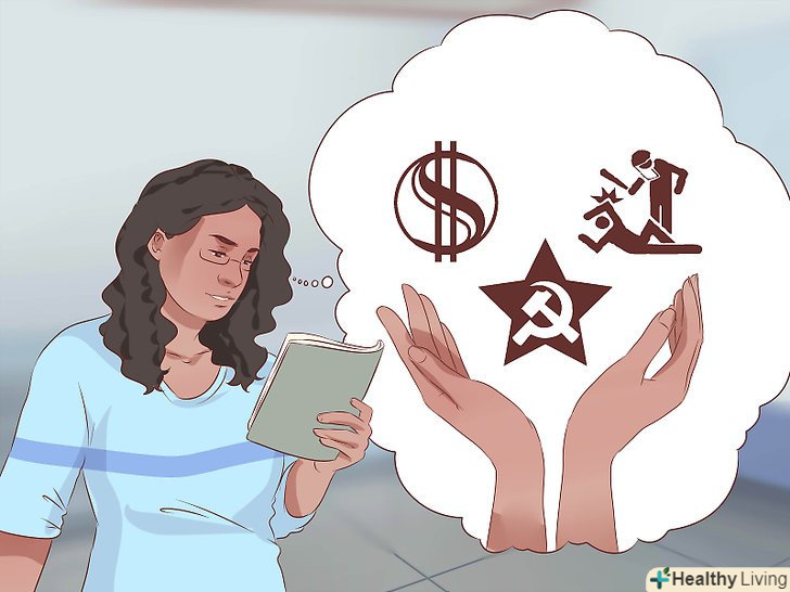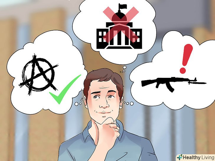 Вивчіть капіталізм, марксизм, фашизм та інші політичні ідеології.Знайте своїх "конкурентів". Знайте, що є важливого в інших системах мислення, щоб зуміти підкреслити, наскільки кращою є ваша точка зору.- Зрозумійте доводи на користь державного контролю, закону і порядку. Знайте, що державність заснована на ідеї того, що людські істоти не можуть ефективно організувати себе на рівноправній основі. Вони потребують централізованої держави, щоб захищатися від тоталітарної влади, підтримувати народ у боротьбі з насильством, бандами, мати більш загальні закони і моральні принципи і системи валютного обігу / грошей, торгівлі і комерції / економіки для запобігання конфліктів міжнародного, національного, державного, і місцевого рівня, групових і особистих.
