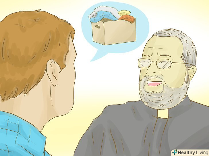 Пожертвуйте невелику суму в фонд допомоги, який безкоштовно роздає їжу бездомним.якщо не знайдете такий в школі або на роботі, то пошукайте за місцем проживання. Деякі благодійні організації працюють цілий рік. Можете знайти його також через місцеві газети або школи.- Якщо ви все ж не знайшли фонд допомоги, то є багато способів поділитися їжею з нужденними! Запитайте у місцевих притулках, церквах та об'єднаннях, чого їм не вистачає. Особливо корисно робити це під час свят.