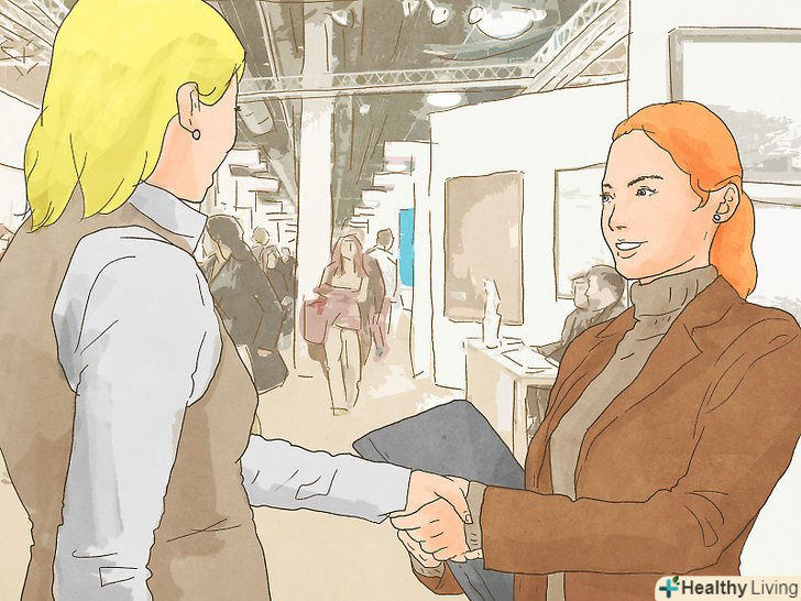 Знайомтеся з новими людьми.Вам слід знайомитися з новими людьми і розвивати ваші відносини. Це можна зробити лише в тому випадку, якщо ви готові часто бувати на людних заходах. Відвідайте благодійний або діловий захід, сходіть на виставку або ярмарок. Ви повинні бути на виду.[12]- Щоб зрозуміти, який захід більше підійде вам, врахуйте специфіку вашої організації. Наприклад, якщо ваша організація допомагає сім'ям, відвідуйте заходи для сімей, включаючи дитячі свята.