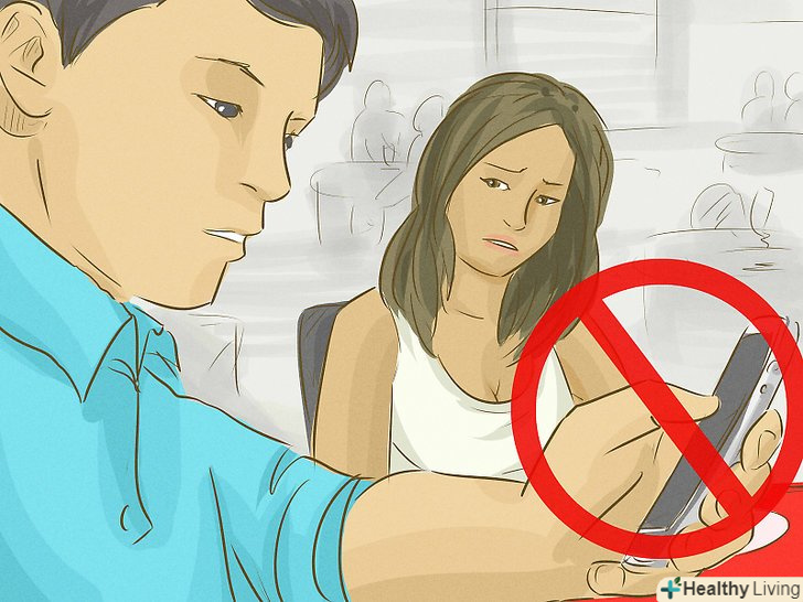 Створіть сприятливий фізичний і духовний простір.усуньте всі відволікаючі предмети і присвятіть розмові всю вашу увагу. Вимкніть всі мобільні пристрої (в тому числі телефон) і призначте зустріч там, де вас ніхто не буде відволікати. Коли ви перебуваєте з людиною наодинці, потрібно заспокоїтися і налаштуватися на слухання вашого співрозмовника.- Виберіть місце, в якому мало відволікаючих вас факторів. Наприклад, якщо ви розмовляєте в кафе, зосередьтеся на вашому співрозмовнику і не відволікайтеся на людей, що заходять і виходять з кафе.