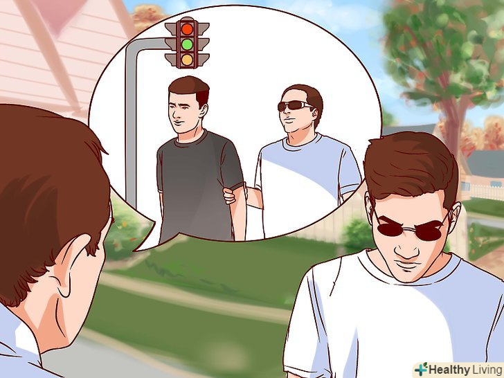 Підходьте і пропонуйте допомогу.багато людей, що діють з кращих спонукань, вважають своїм обов'язком відразу ж допомогти, коли бачать на вулиці сліпого. Допомагати оточуючим добре, але завжди необхідно цікавитися, наскільки така допомога доречна. Спочатку краще підійти до людини і запропонувати допомогу.- Підійдіть до незрячої людини, привітайтеся і Представтеся: "Здрастуйте! Мене звати Михайло"»[23]