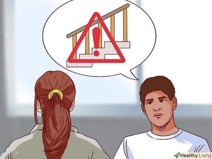 Сходинки і сходи.рухатися сходами і сходами досить складно. Важливо пам'ятати про запобіжні заходи, щоб уникнути травм.- Перш за все повідомте сліпому про те, що перед вами сходинки. Вкажіть, що вони спускаються вниз або піднімаються вгору.[12]