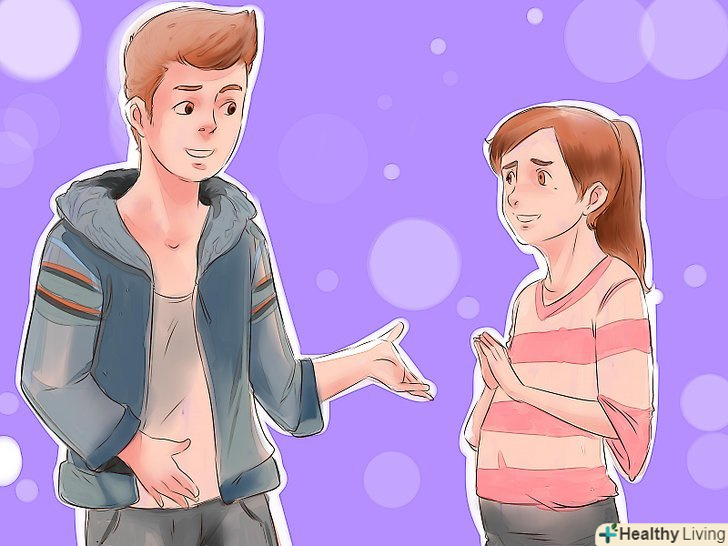 Вчіться розмовляти з новими людьми.намагайтеся щодня розмовляти з незнайомими людьми, щоб перестати соромитися. Заводите бесіди з новим однокласником, продавщицею з продуктового магазину або навіть з гостями сусідів. Якщо ви не заважаєте іншим, то такі бесіди з новими людьми допоможуть підвищити самооцінку, зміцнити впевненість в собі і звільнитися від сором'язливості, яка заважає спілкуватися з дівчатами.- Розмовляючи з незнайомцями, можна навчитися краще розуміти людей і знаходити відповідні теми для обговорення. Ще ви навчитеся вести бесіду в різному темпі, а також прийміть той факт, що розмова може спочатку викликати незручність.