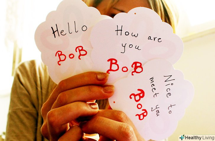 «Міша-ведмідь, а Боря – Борсук.» Прив'яжіть нове для вас ім'я до назв тварин або предметів. Існує кілька методів, які можна задіяти, так що вибирайте:- Знайдіть схоже за звучанням назва тварини або предмета. Так наприклад: "як же її звуть? Так, а не випити-но мені чарку... а, да...Привіт, Маргарита Петрівна!«"Галя – галчонок, Женя – жменя і т. п..»