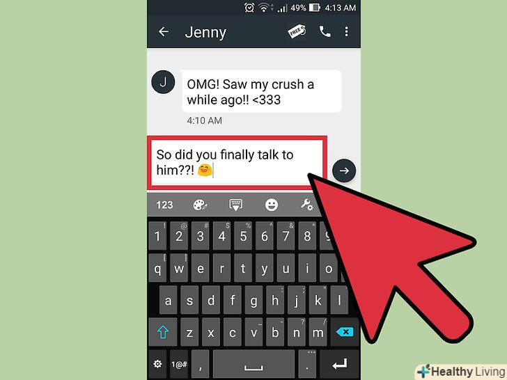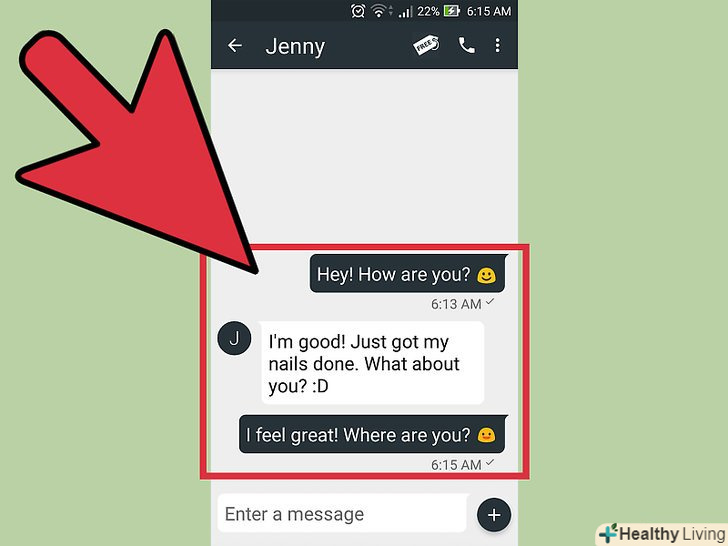 Не пишіть знеособлені повідомлення.співрозмовник повинен розуміти, що він листується не з роботом, а з живою людиною. Додавайте смайлики і символи емоцій, використовуйте текстові позначення сміху на кшталт "ха-ха", якщо вони доречні. Друг повинен бачити ваші унікальні стилістичні особливості мови, які завжди помітні при особистій зустрічі.- Не переживайте про те, щоб догодити другу. Набагато важливіше залишатися собою під час бесіди.