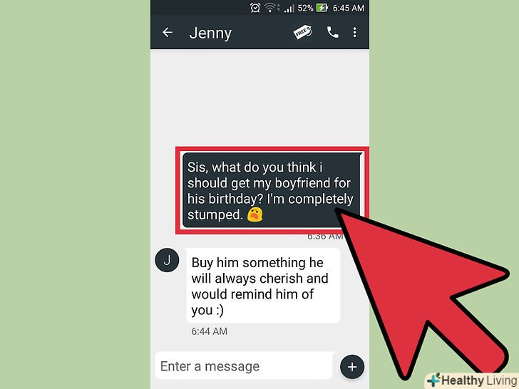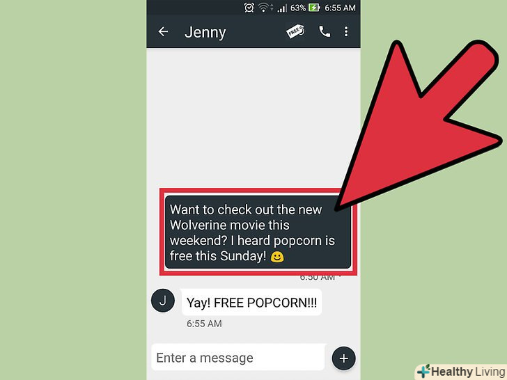 Надсилайте картинки або звукові повідомлення.це дуже весело! Надішліть другу забавну фотографію або картинку. Додайте свою улюблену пісню або незвичайний звуковий ефект для більшого веселощів. Звукові повідомлення і картинки дозволять не тільки поговорити, але і посміятися разом. Також це відмінний спосіб завершити захоплюючу бесіду. Приємне відчуття після розмови надихне друга на нові бесіди з вами.- Переконайтеся, що телефон співрозмовника може відображати фотографії, звукові ефекти або інші додатки до повідомлень. Навряд чи людині сподобається, якщо він не зможе подивитися відеоролик або фотографію, яку ви йому відправили.