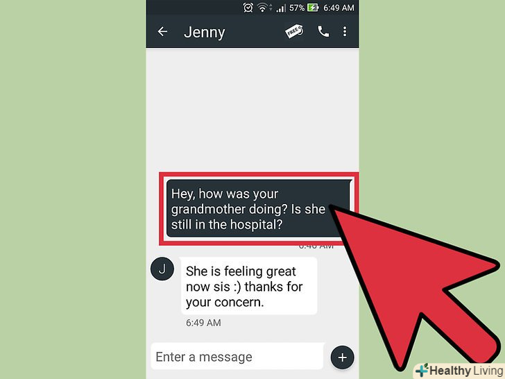 Запитайте про те, що ви обговорювали при зустрічі.Один із способів проявити чемність-запитати про те, що ви обговорювали вчора або минулого тижня. Покажіть, що Ви уважні і пам'ятайте події і теми крім вашої листування. Кілька прикладів:- " Як справи у твоєї бабусі? Вона все ще в лікарні?»